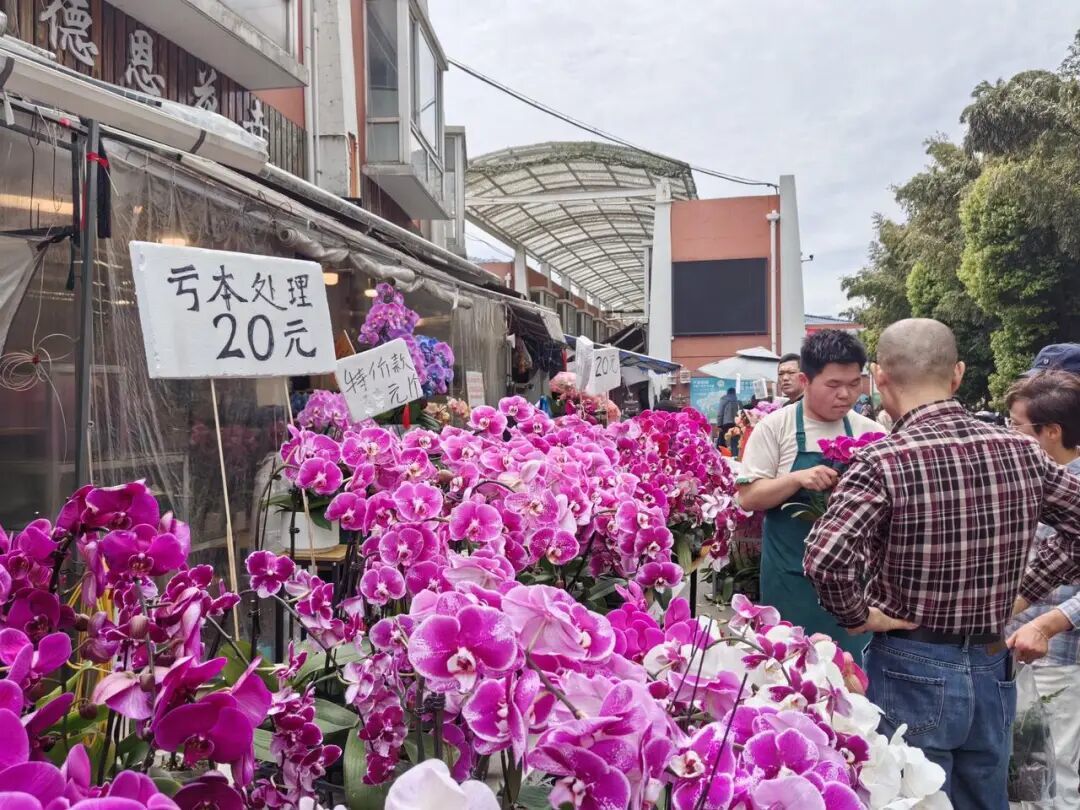写着“亏本处理20元”的蝴蝶兰。(图/程艺丹 摄)