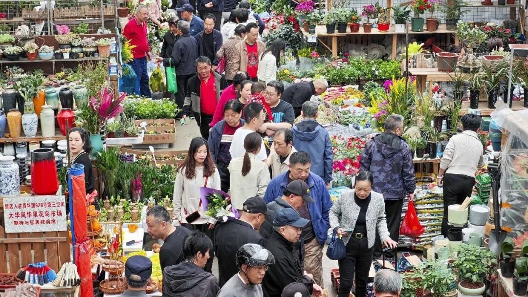 市场里随处可见“清仓甩卖”“亏本处理”等字样:鲜花绿植店通常写在泡沫板上;瓷器、古玩店则用毛笔写在红纸上。扩音器传出的吆喝声此起彼伏:“卖一天少一天,卖一盆少一盆!”