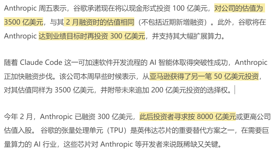 3、谷歌计划向 Anthropic 投资至多 400 亿美元