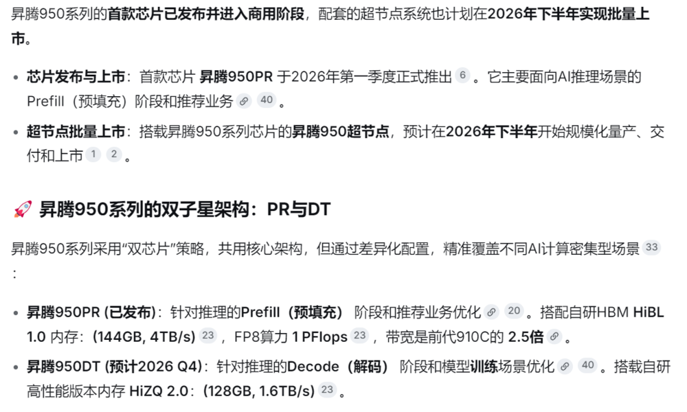 2、昇腾950下半年放量